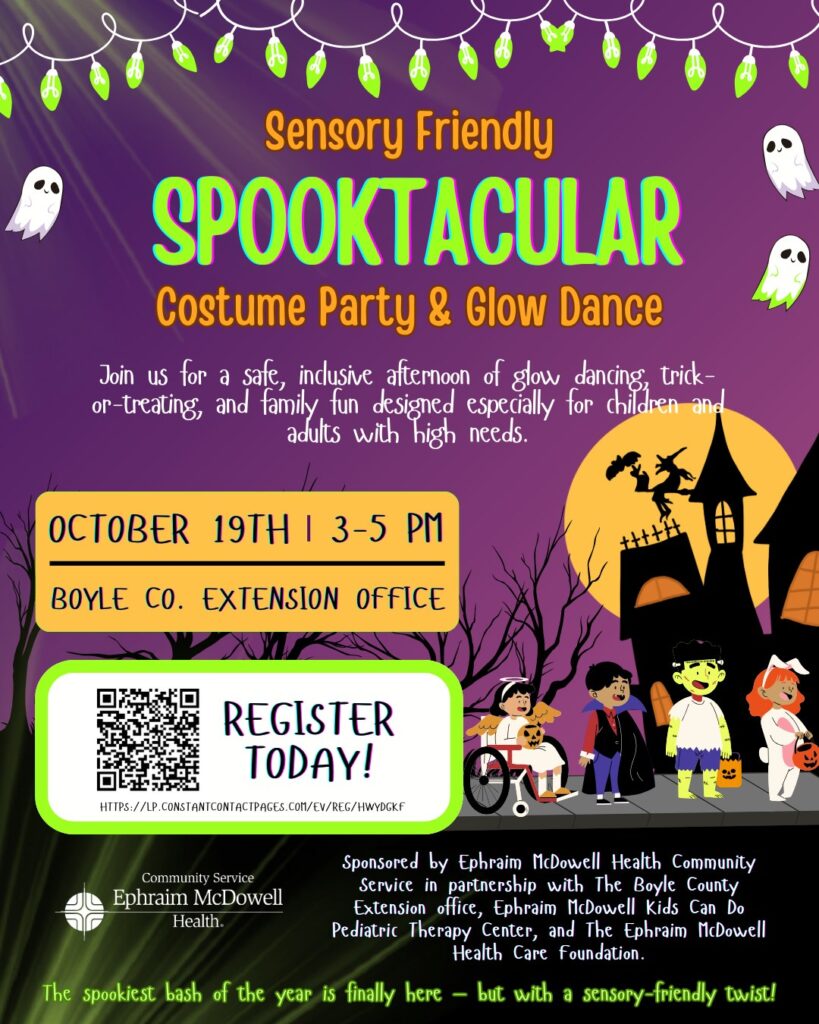Ephraim McDowell Health is thrilled to announce the return of the Sensory Friendly Spooktacular Costume Party & Glow Dance on Sunday, October 19 from 3 p.m. to 5 p.m. at the Boyle County Extension Office. This free, family-friendly event creates a safe and inclusive space for children and adults with special needs to celebrate Halloween in a way that meets their unique needs.