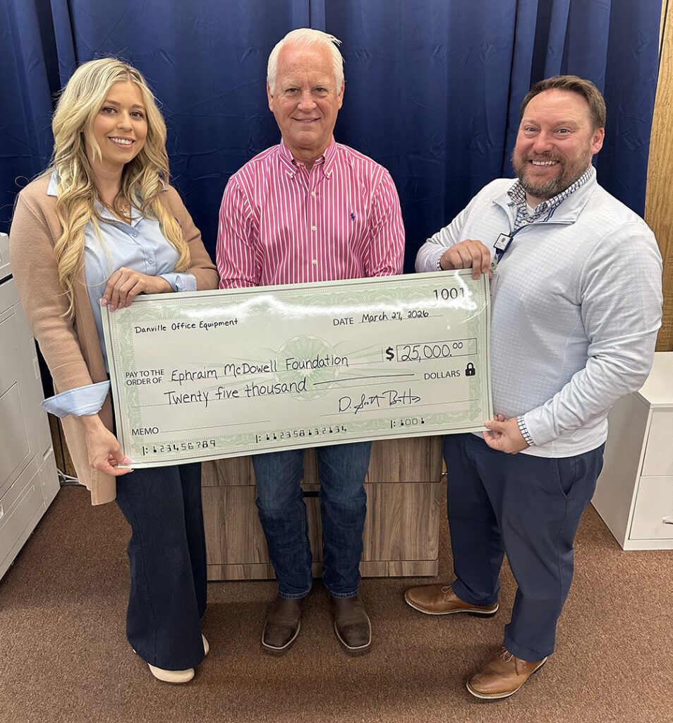 The Ephraim McDowell Health Care Foundation (EMHCF) is proud to announce a $25,000 gift from Danville Office Equipment (DOE), reinforcing a long-standing partnership dedicated to improving healthcare across central Kentucky.